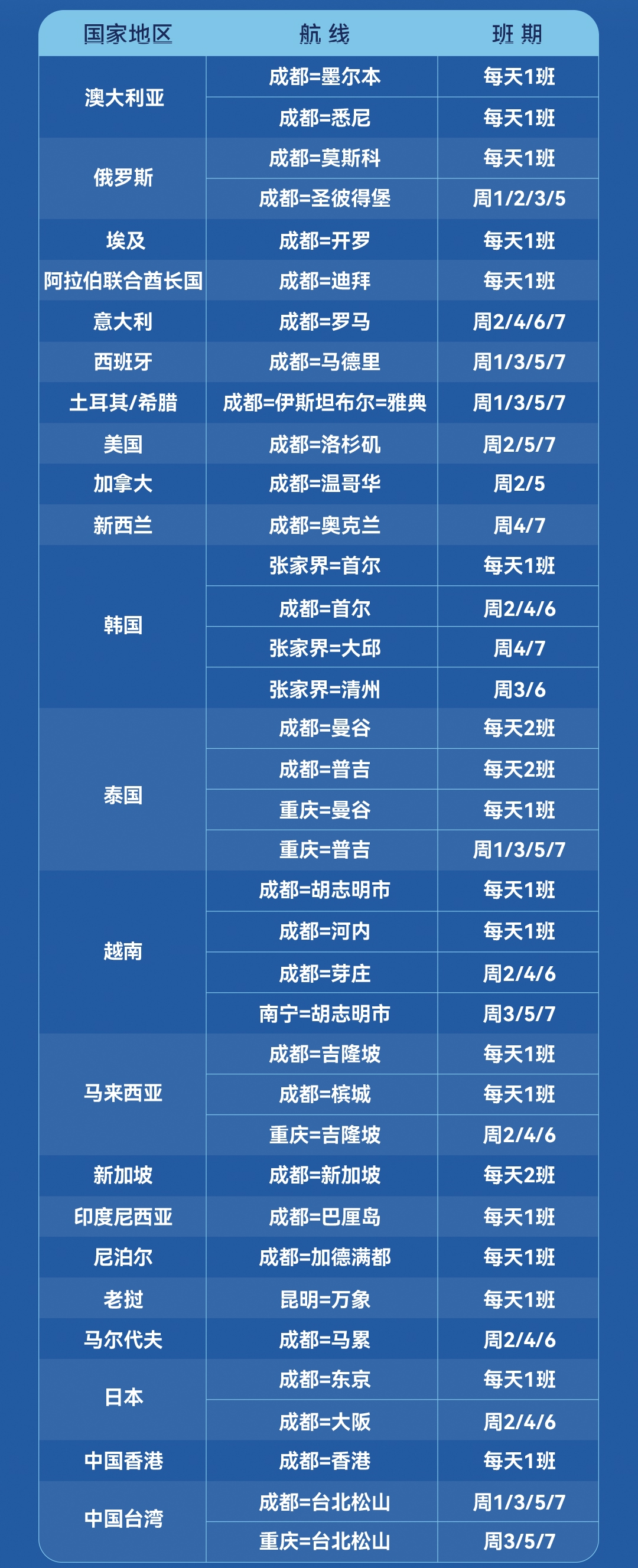 近日,四川航空发布2026年1月国际及地区航班计划,持续深化东南亚等重点区域航线布局。目前,川航已执飞32条国际航线及3条港台地区航线,构建起直飞密集、中转顺畅的跨境航空网络。