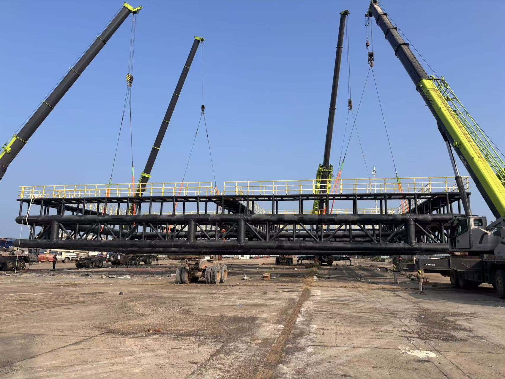 据悉,该浮体平台集海上能源补给、深远海养殖、海洋旅游观光等多重功能于一体,总重约50吨,只相当于传统钢架结构的1/3。主体结构采用模块化设计,在四川华蓥完成预制后,运至海南进行整体拼装。下水后,将拖航至陵水县土福湾海域投入深远海养殖运营。