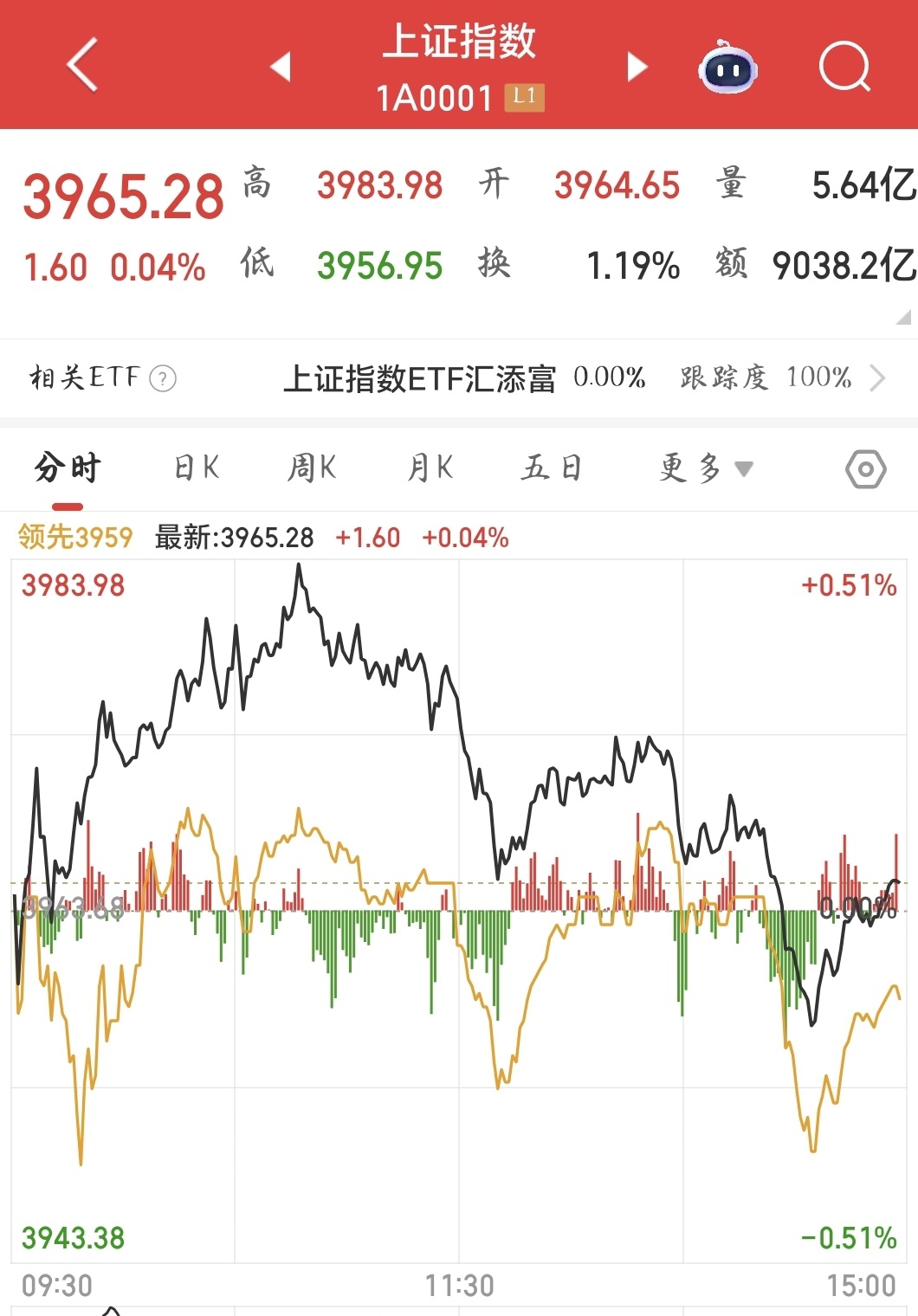 沪指当日走势。