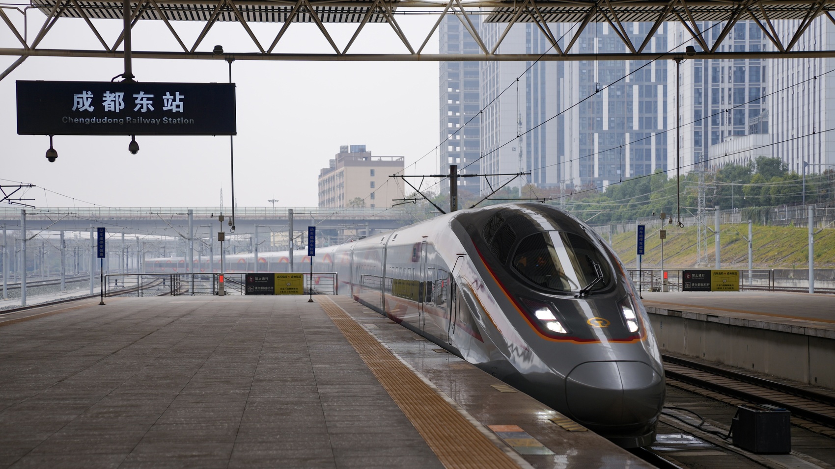 成都东站列车停靠,等候乘客上车。中国铁路成都局集团有限公司供图