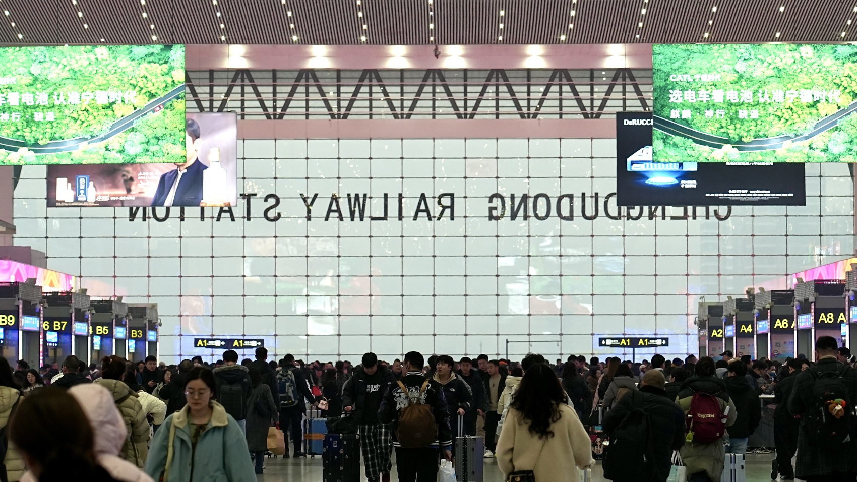 客流高峰预计出现在1月1日(放假第1天),全站预计发送旅客49.4万人次,其中成都东站32.8万人次,成都南站4.9万人次,成都西站3.7万人次。