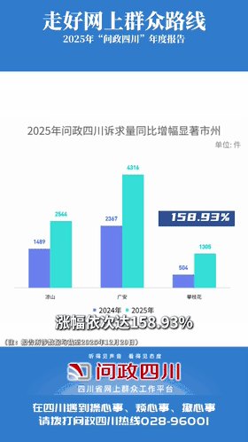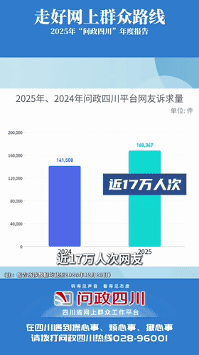 截至2025年12月20日,全省共有约17万人次群众通过问政四川平台求助、建言、咨询,有效诉求量较2024年同期上涨18.97%。