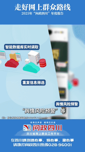 2025年以来,全省12857家(个)党政部门、事业单位、企业实名入驻“问政四川”平台,形成省、市(州)、县(市、区)、乡镇(街道)四级办理体系,“问政四川”已成为四川最具影响力的网络理政平台。