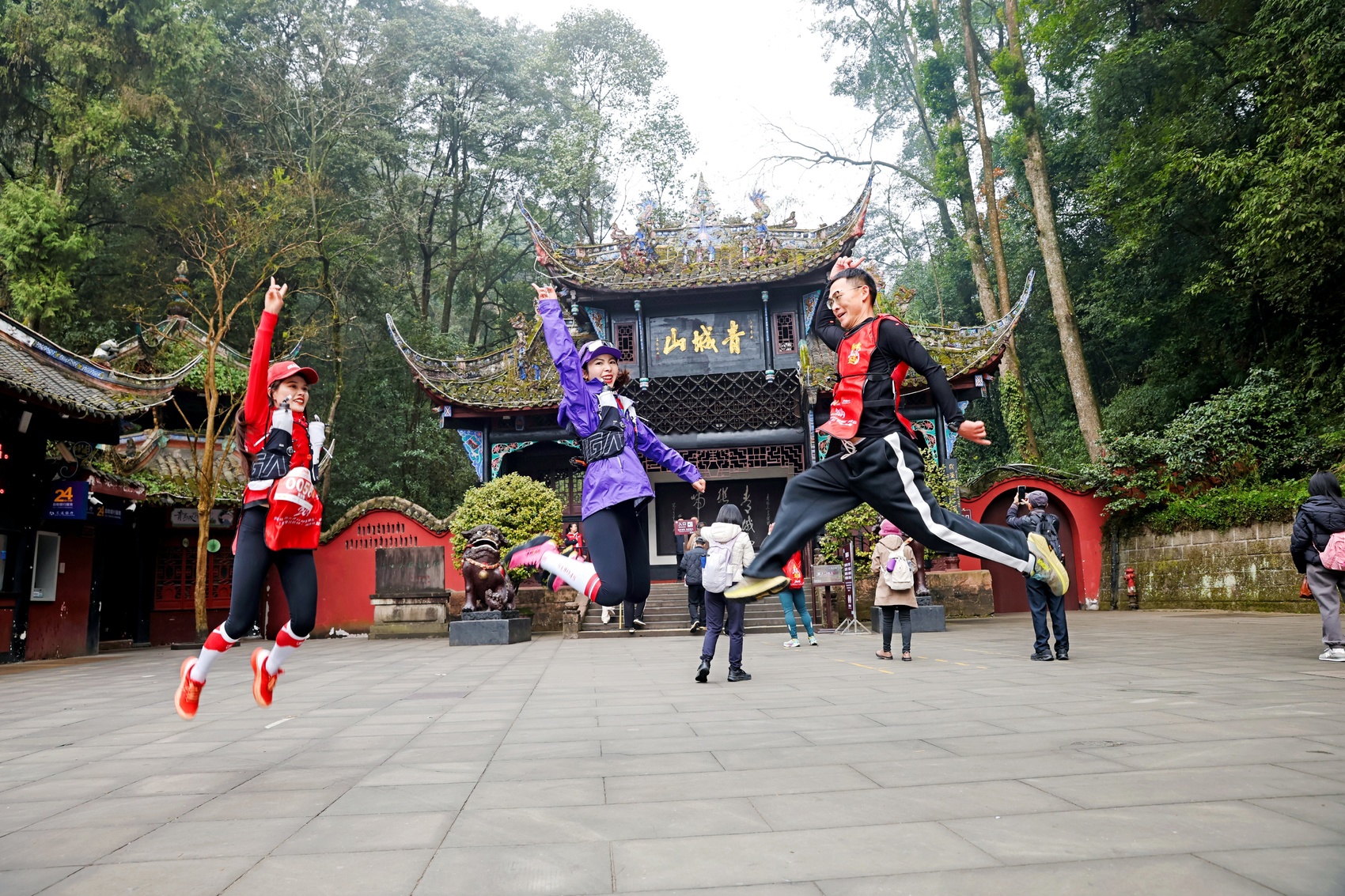 12月31日上午,四川省“百万群众迎新登高”健身活动(都江堰分会场)在青城山举行,来自全国各地的1200名健身爱好者用运动开启崭新一年。