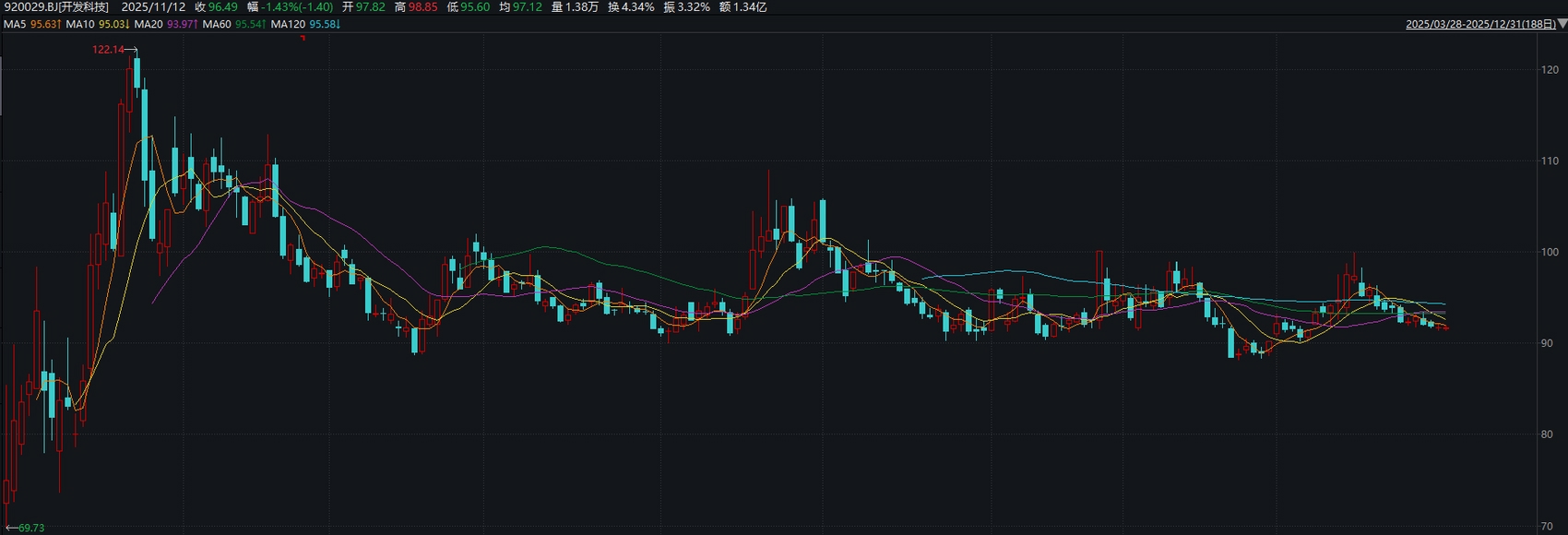 开发科技上市以来走势行情。