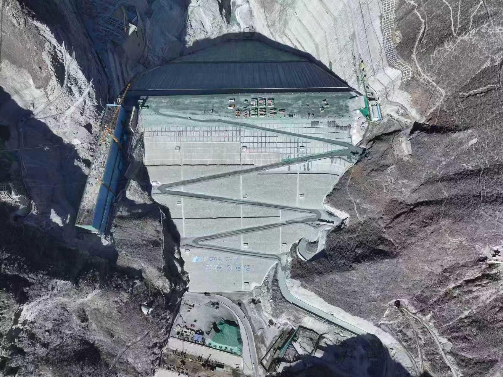 华电金上拉哇水电站大坝建设现场。