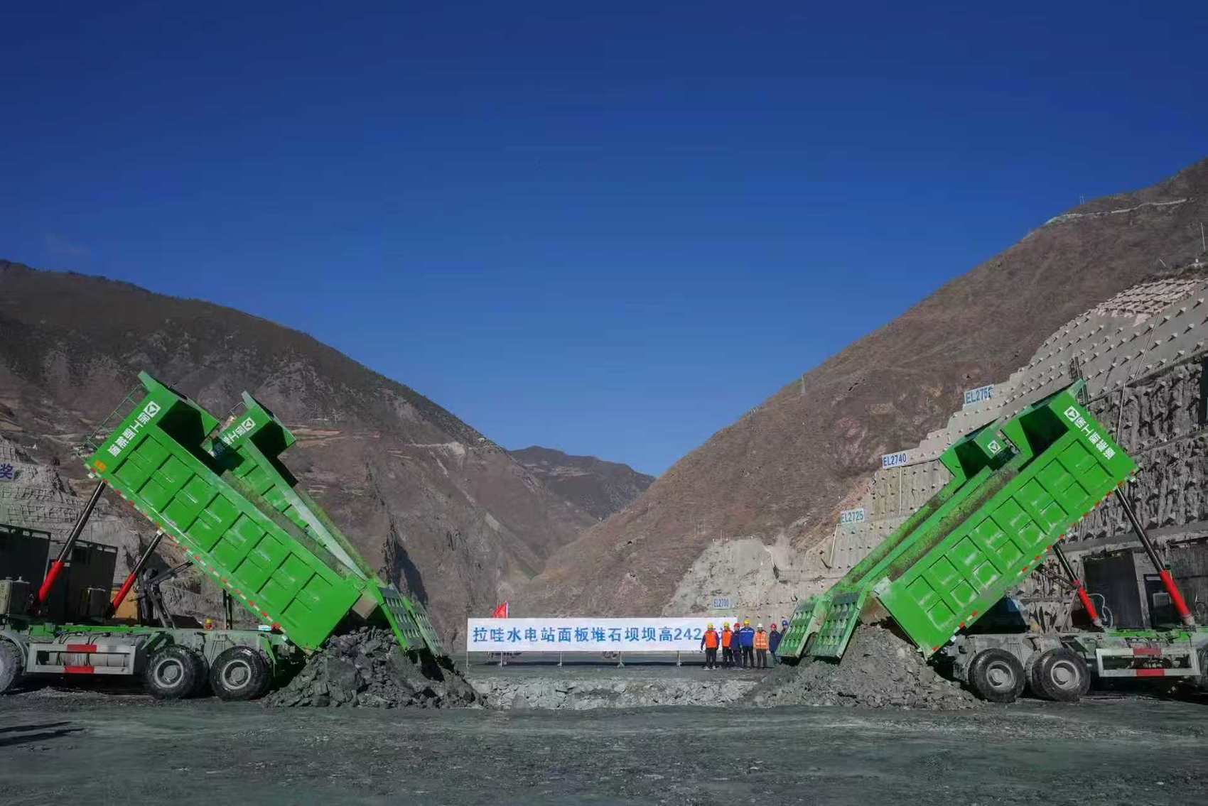 拉哇水电站位于四川省巴塘县与西藏自治区芒康县交界的金沙江干流上,是国家“十四五”规划重点建设的金沙江上游清洁能源基地重要组成部分,工程总装机容量200万千瓦,库容24.67亿立方米,最大坝高242.5米。电站自2023年6月启动大坝填筑以来,累计完成填筑量约1620万立方米,相当于4座“鸟巢”。
