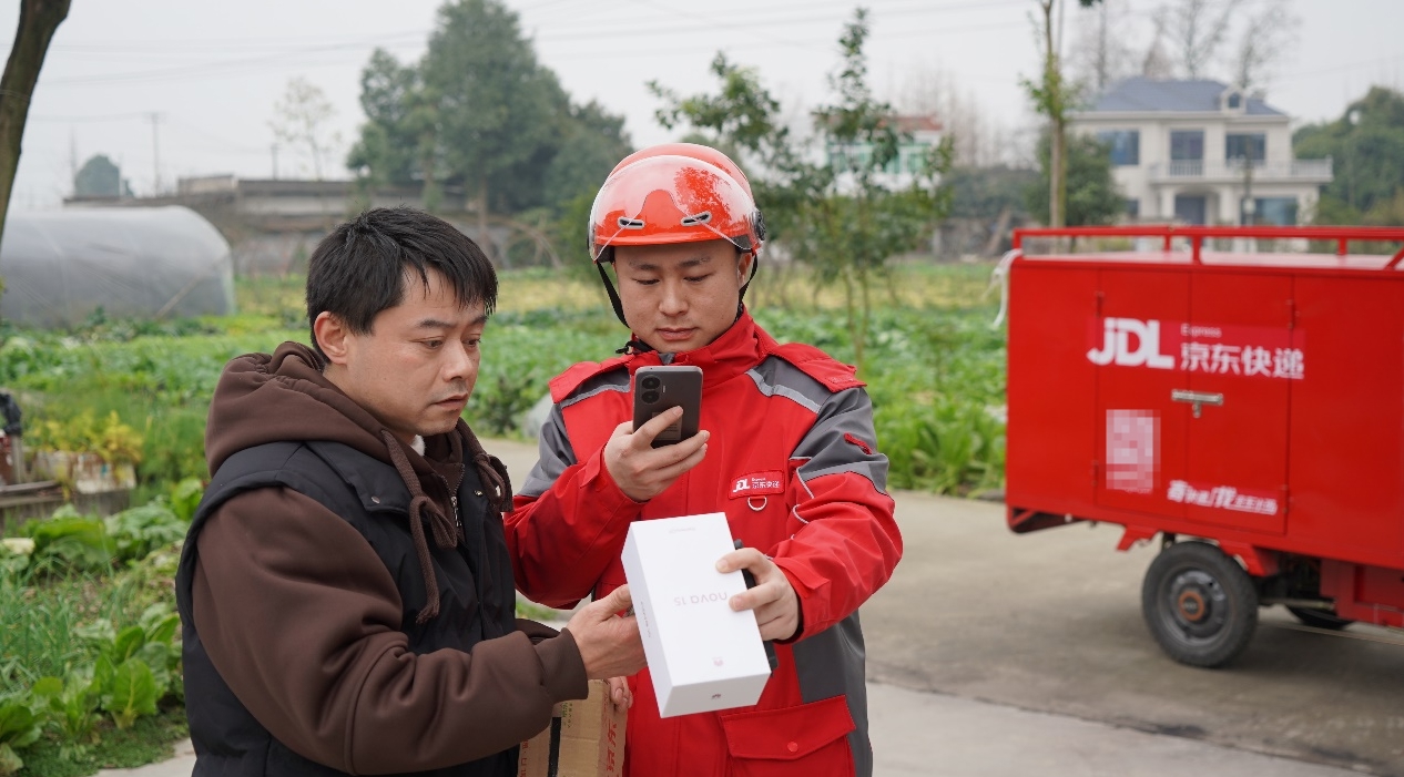 这是2026年京东送达乡村的第一单国补订单。两位京东小哥送货上门时,黄强欣喜中有点震惊:“太快了,这么快就送到村里”。