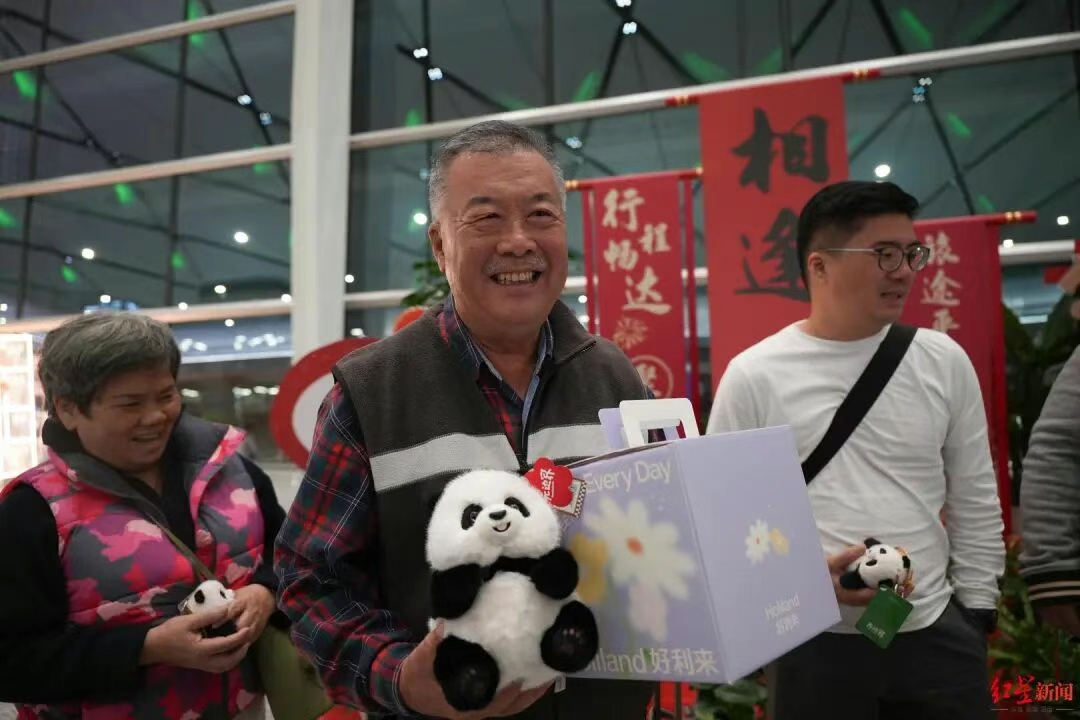 2026年1月1日零时许,9名来自马来西亚的游客缓缓走出成都天府国际机场到达出口。“欢迎到成都!”现场,成都市文广旅局工作人员为他们准备了特色成都礼物——花花玩偶。“在成都过新年,巴适!”游客们感慨。
