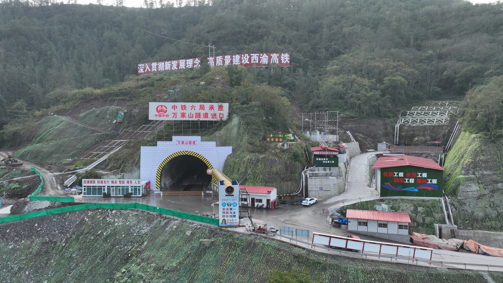 随着万家山隧道顺利贯通,西渝高铁康渝段已贯通43座隧道,路基、桥梁、隧道等站前主体工程建设正有序推进。
