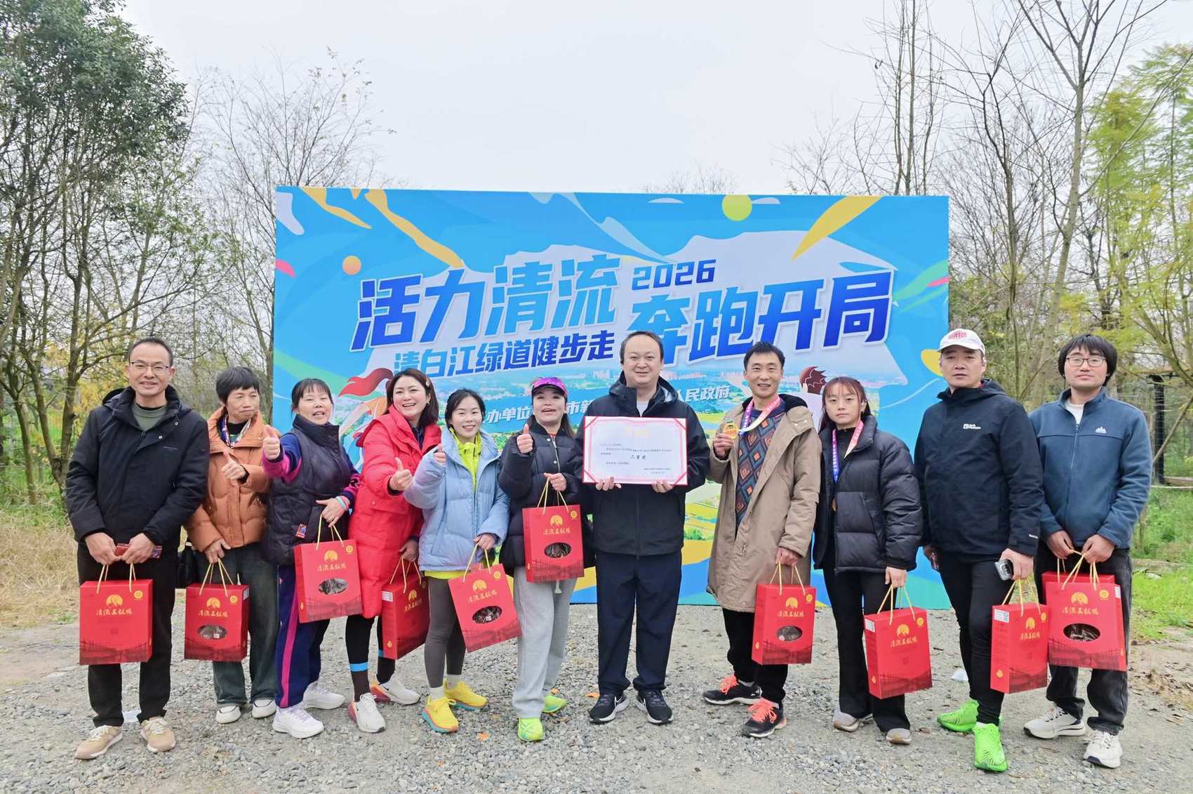 1月1日上午9时,一声清脆的发令枪响,打破了清流镇清白江畔的宁静。新都区清流镇200多位身着运动背心的“跑友”,如一道流动的风景线,或跑或快走,以自己舒适的节奏,迈开不同寻常的新年步伐。