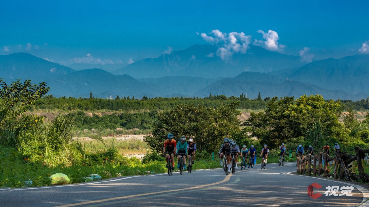 7月28日上午,一群骑行爱好者在温江北林绿道骑行,四姑娘山幺妹峰露出山尖,青城山老君阁亦清晰可见。C视觉签约摄影师 田相和