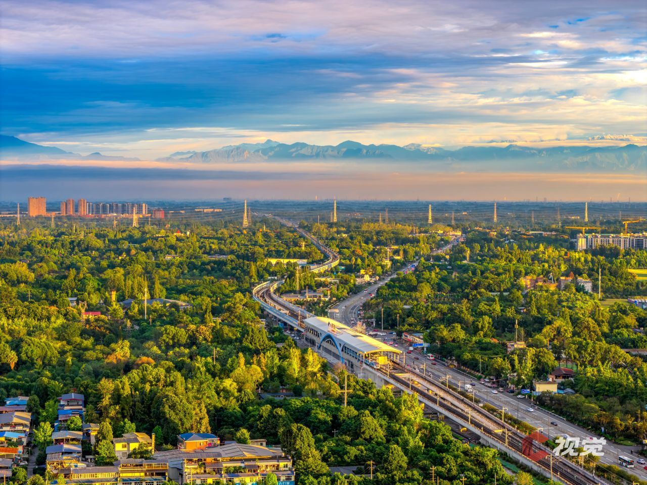 5月8日清晨,在郫都区科幻馆遥望大雪塘雪山。C视觉签约摄影师 王庆新