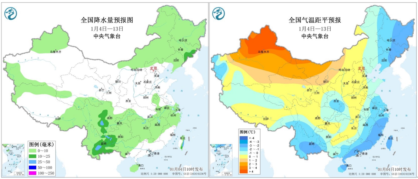 这与中央气象台的预报基本一致:预计1月4日至13日,影响我国的冷空气势力不强,但活动频繁,四川的降水主要集中在盆地西部,盆地气温预计将接近常年,攀西地区和甘孜州部分地区气温略微偏低。