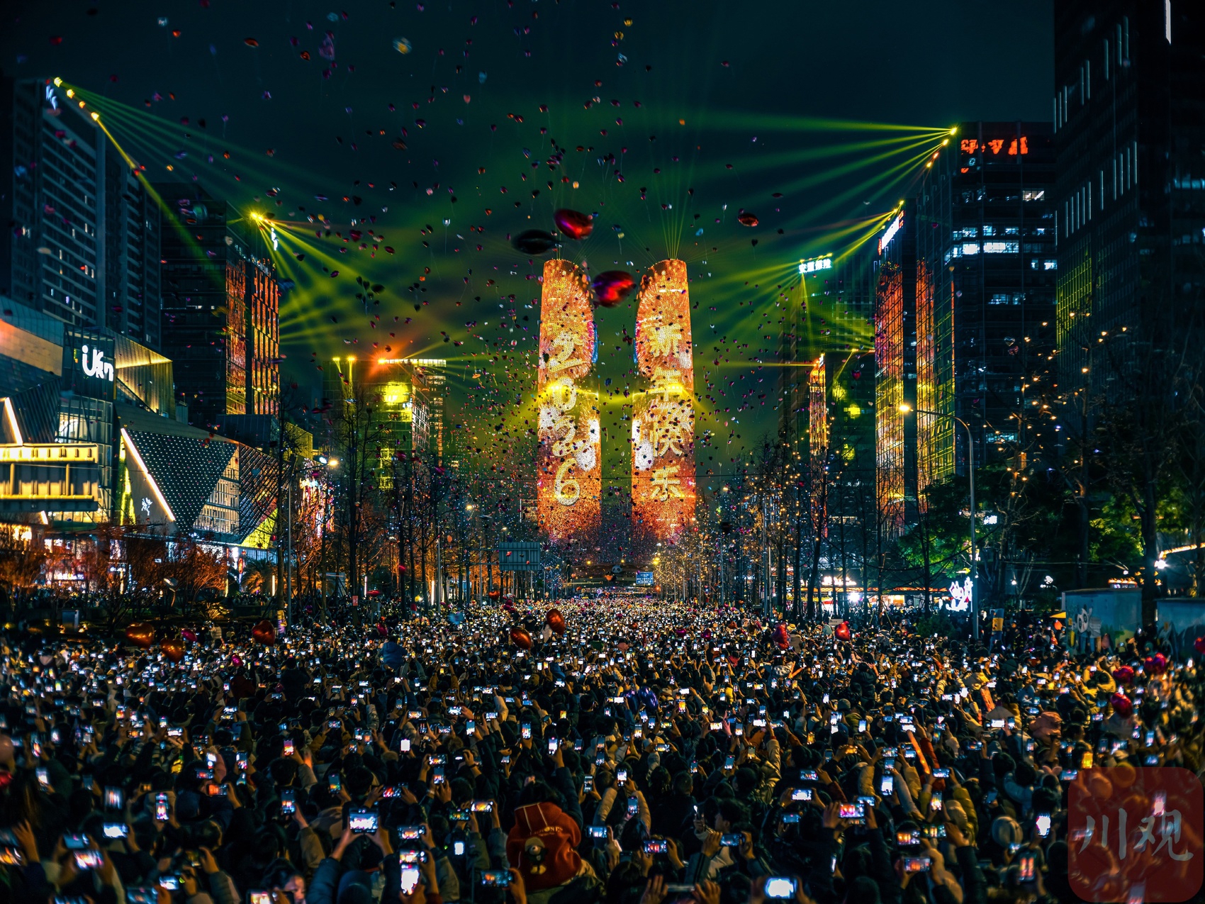 2025年12月31日晚,12万余人欢聚在成都交子大道,共同迎接2026年的到来。
