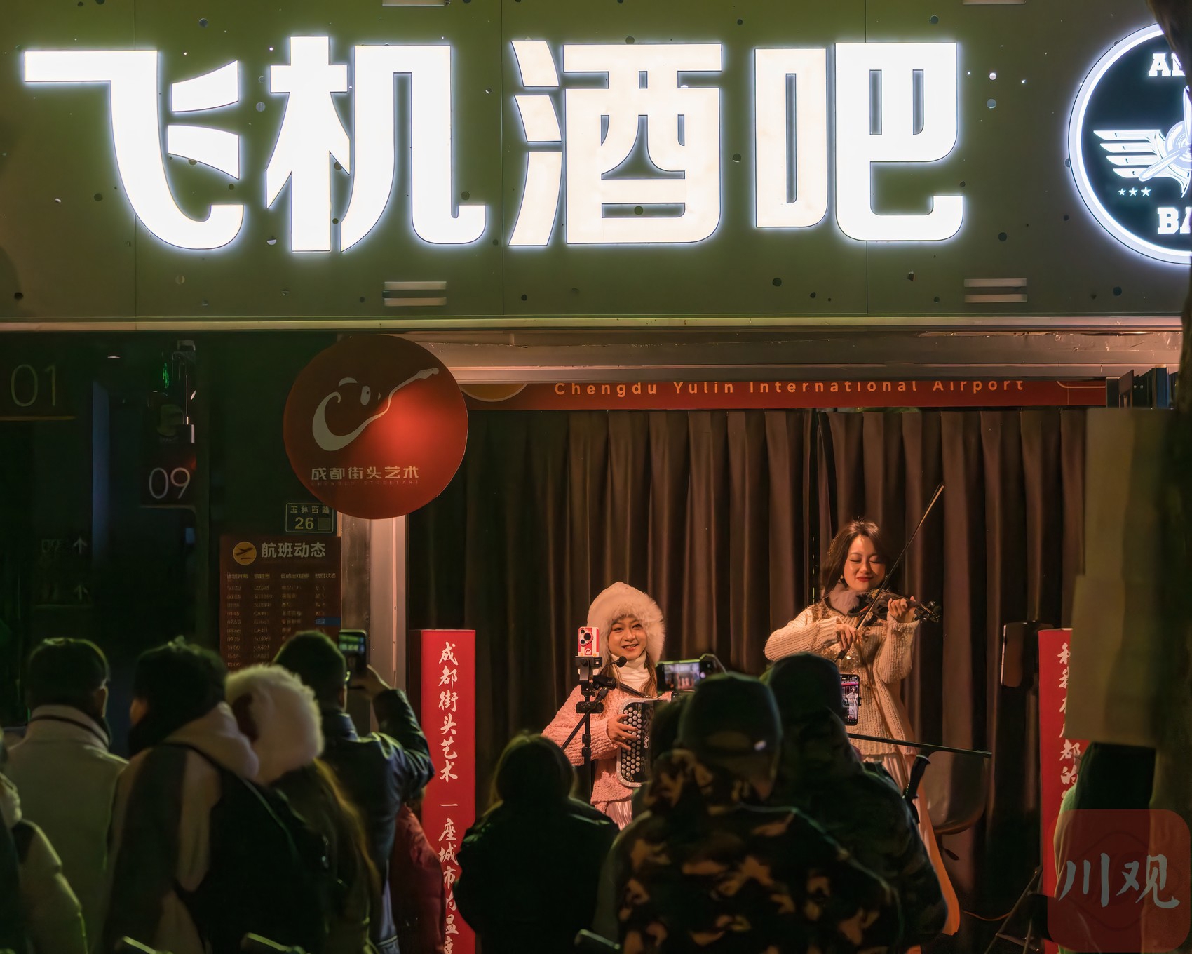 1月2日晚,成都玉林西路上演了一场小型音乐演奏会,吸引众多市民游客驻足欣赏。