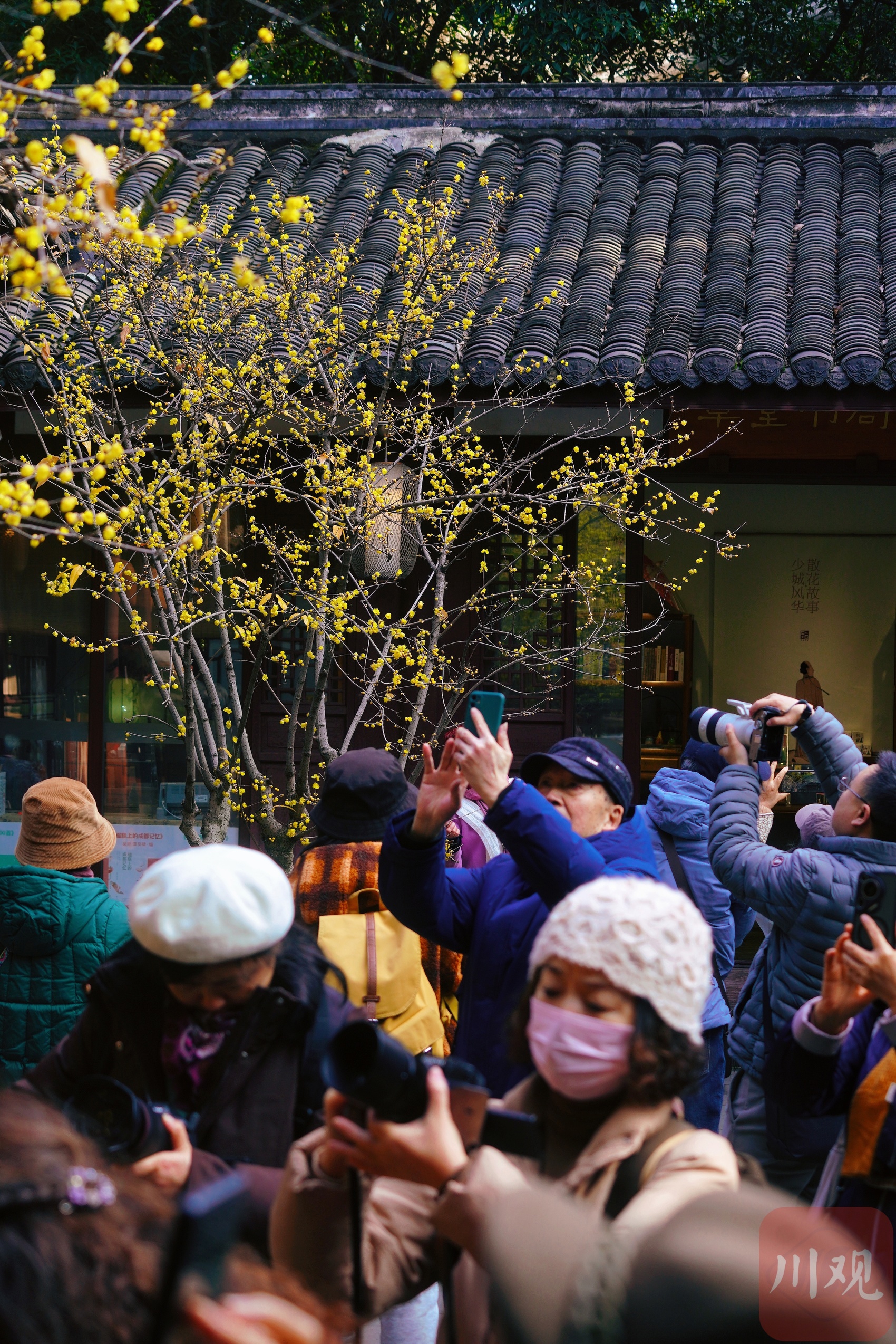 随着最佳观赏期的到来,成都各大公园的蜡梅观赏点迎来了络绎不绝的市民。从古典园林到城市公园,从滨江地带到街头巷尾,金黄色彩点缀着冬日的蓉城。摄影爱好者、传统文化爱好者、普通市民等不同群体都以各自方式参与这场一年一度的冬日盛宴。
