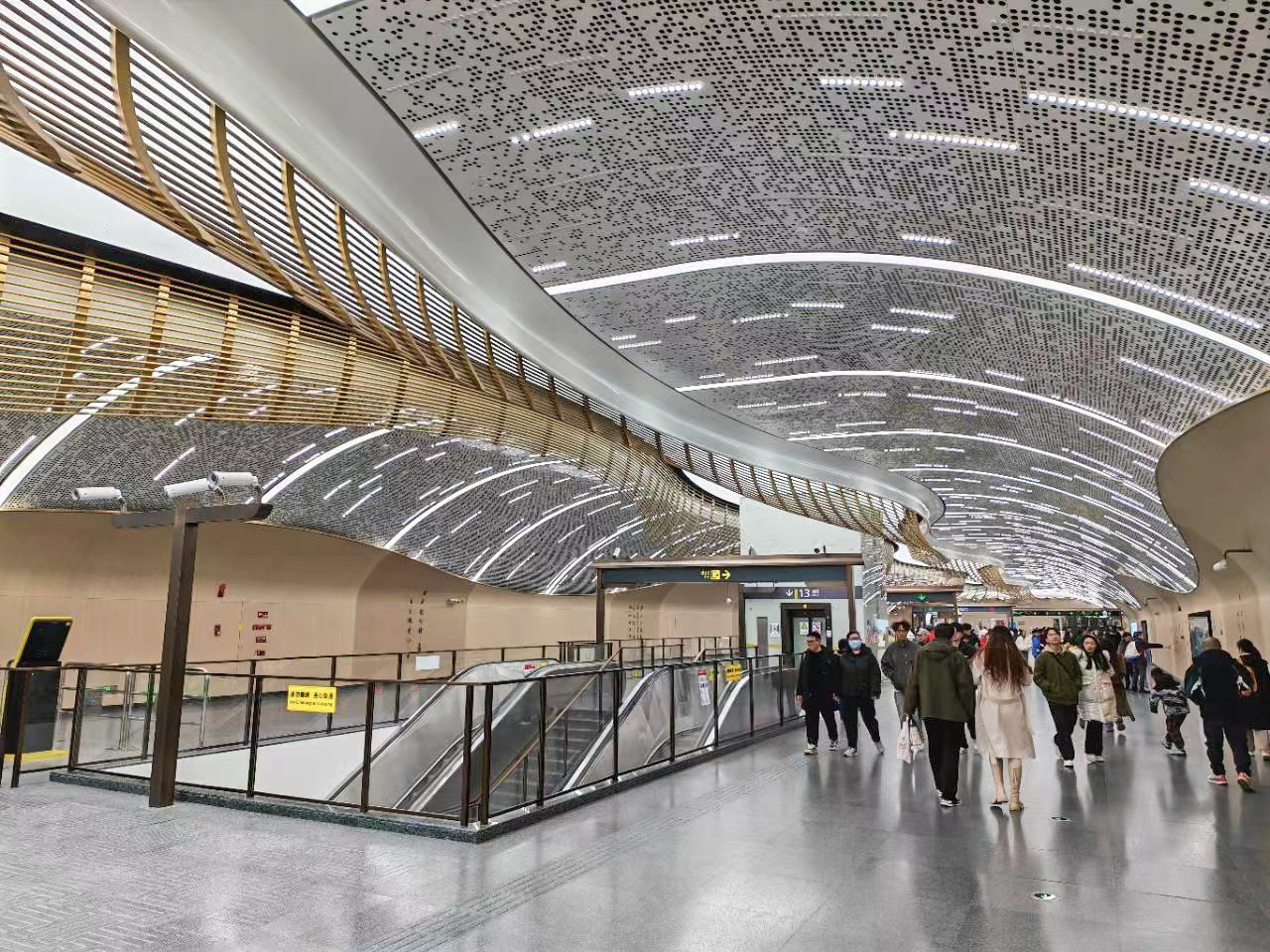 新开通的13号线杜甫草堂站,在元旦迎来首个假期“大考”。据统计,假期期间,该站客运量近1.4万人次。来自西安的赵先生一家三口感慨:“地铁直达太方便了,孩子看着站内的诗词装饰,都能念出好几首杜甫的诗句了!”