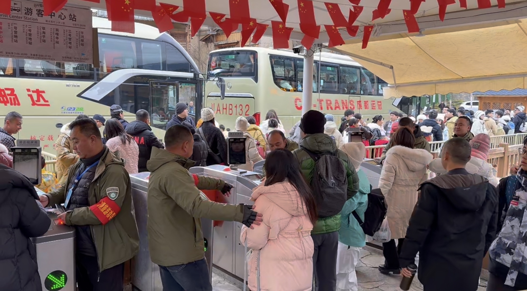 海螺沟景区的游客在排队上车。图据微甘孜公众号