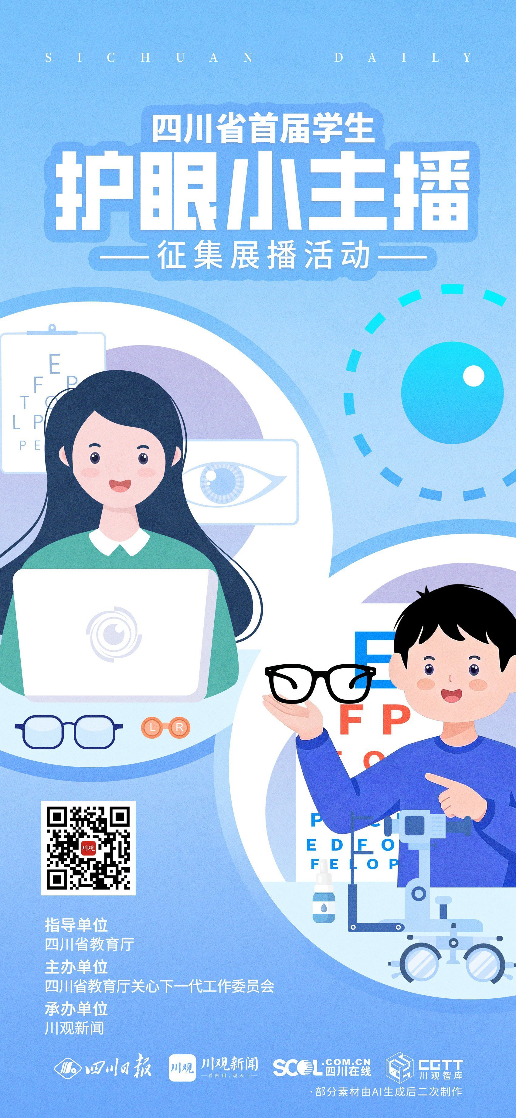 作品征集阶段结束后,评审委员会将从内容科学性、表达流畅度、创意创新性等多个维度进行综合评定,最终选出100名“护眼小主播”并向社会公布名单,获奖学生将获得四川省教育厅关心下一代工作委员会颁发的荣誉证书。在展播阶段,川观新闻App将开设“护眼小主播”专属展播区,集中展示100个获奖作品。届时,网友可登录川观新闻App进入展播专区,为喜爱的“小主播”作品点赞助力,让科学护眼知识通过网络传播得更广、更远。