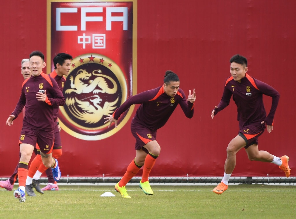 当日,中国国家男子足球队在广东肇庆集结训练。