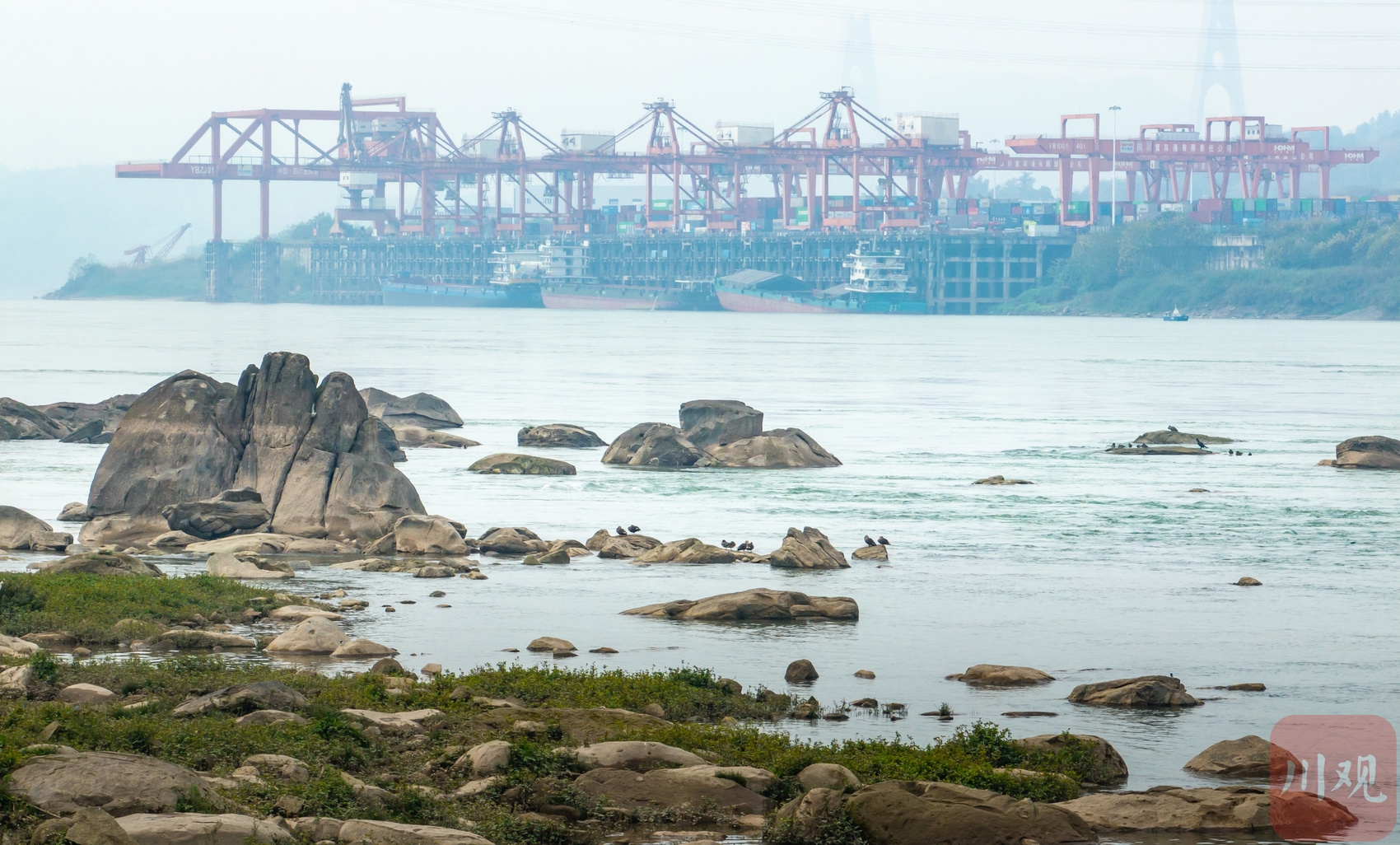 长江边的越冬水鸟。