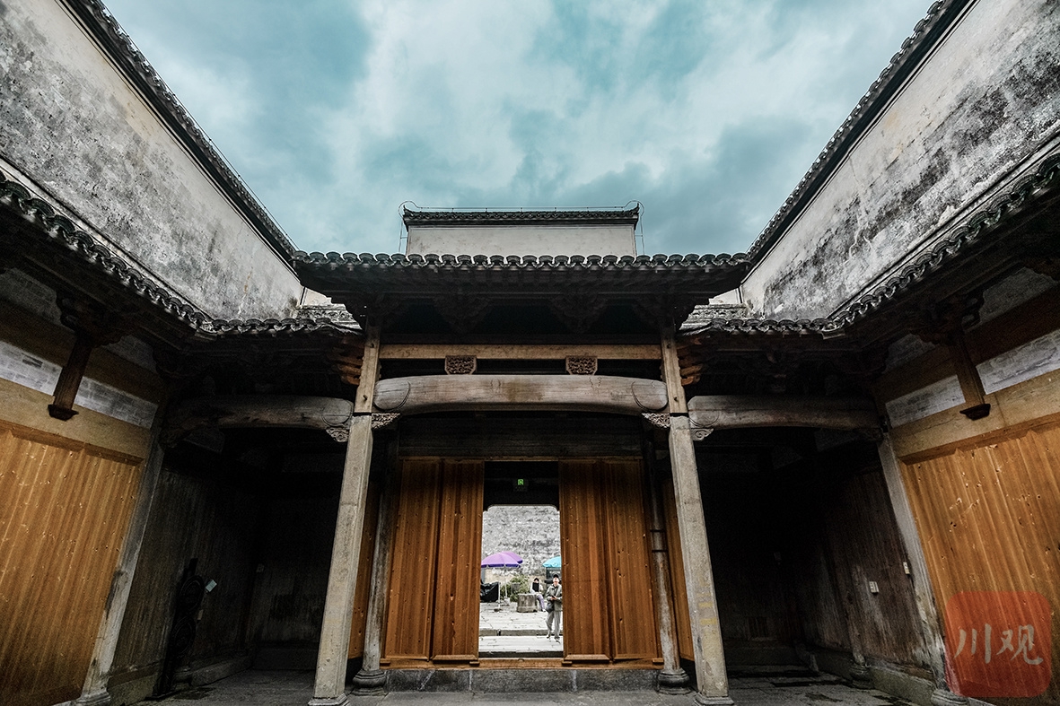 舒光裕堂的七彩门楼堪称一绝,三百余尊彩色砖雕菩萨历百年仍清晰。透过“屏山拱峙”拱门取景,常见农人牵牛走过,远山如黛,古今交融。