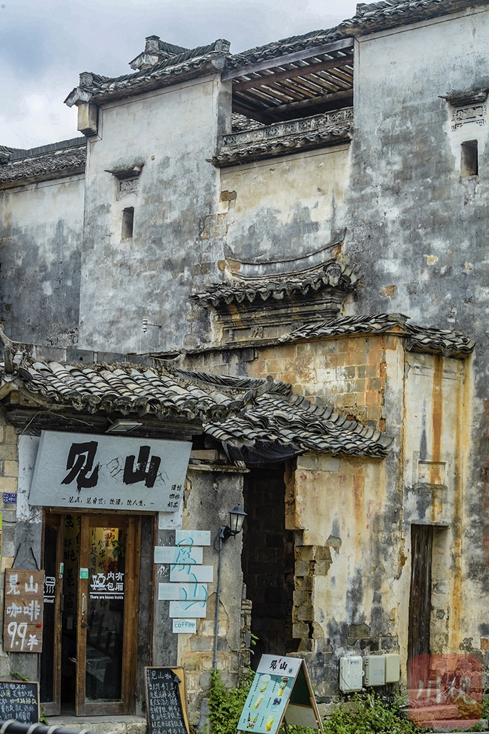 在斑驳沧桑的徽派老建筑间,古旧瓦檐下开着的 “见山” 小店,藏着古村独有的文艺烟火。