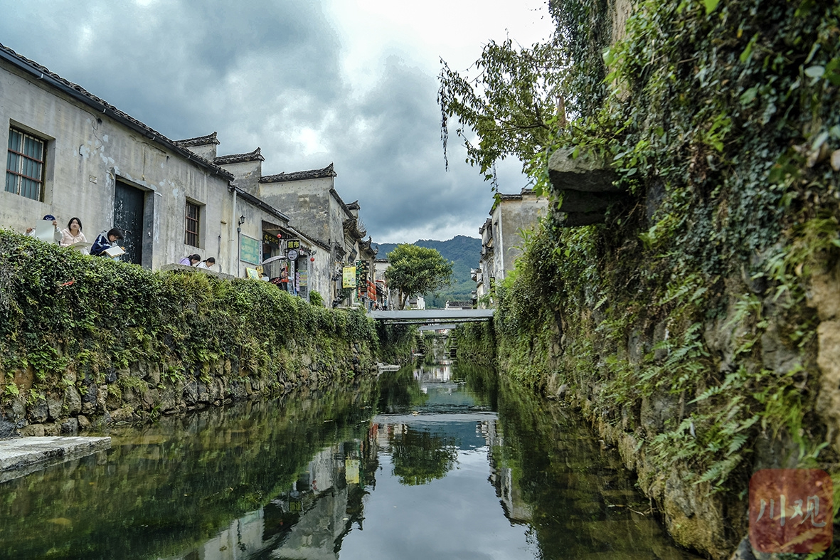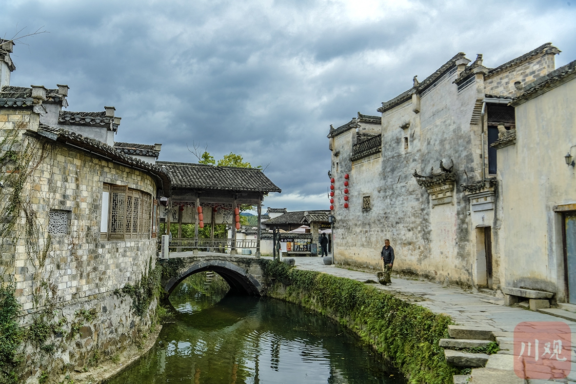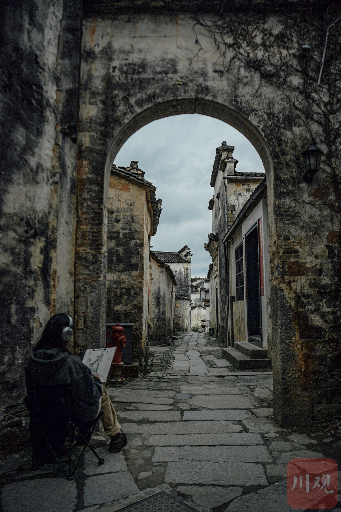 徽派古村巷弄间,青石板路依河延伸,黛瓦白墙的老建筑,以其斑驳肌理尽显古村的岁月质感。