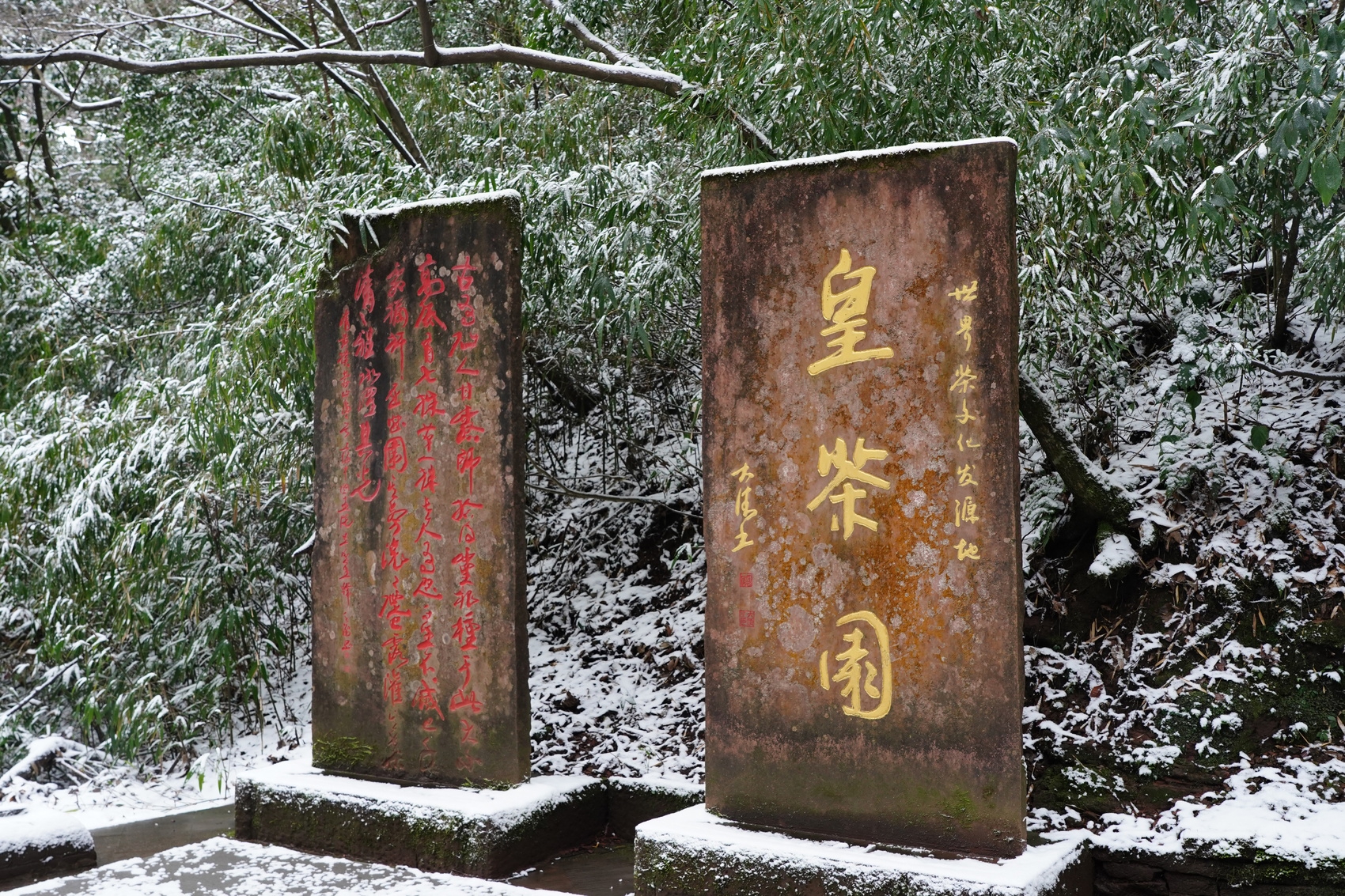山上的皇茶园、甘露灵泉院石牌坊、天梯古道、禹王宫、净居庵石牌坊等古文物,在白雪的点缀下,仿佛把时间刻度拨回到了千年前。“扬子江心水,蒙山顶上茶”,这属于中国人的浪漫,在雪中茶韵中具象化。