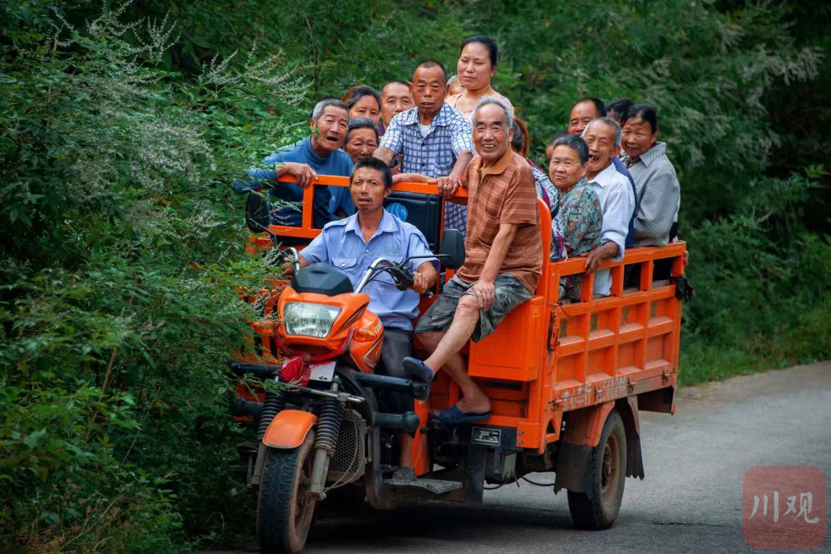 三轮车载满乡邻,笑闹声裹着草木气,把乡间出行的热络烟火,都揉进这一程里。