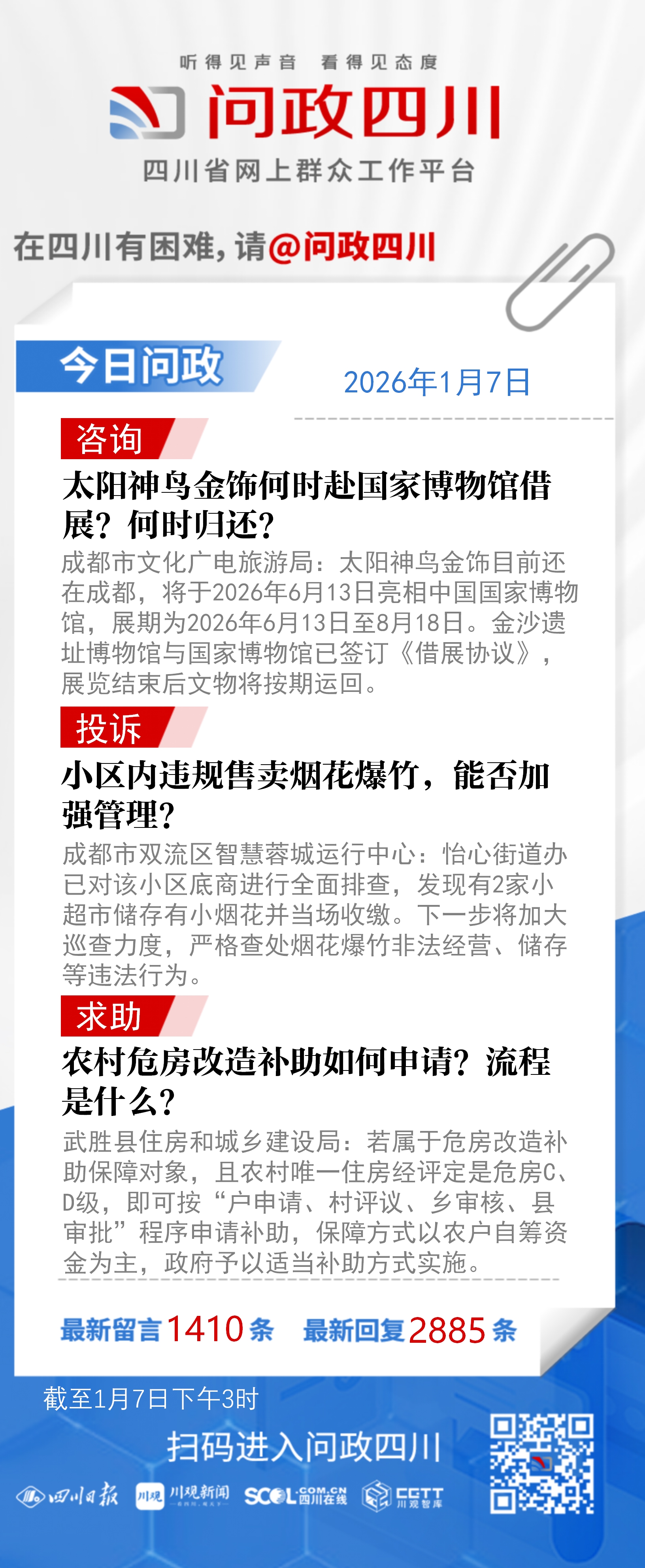 问政四川网友提问:网传太阳神鸟金饰今年要借展国家博物馆,作为成都的重要文化符号,太阳神鸟金饰是否已经借出?何时能够归还?