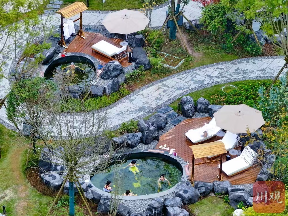 游客在体验周公山温泉。