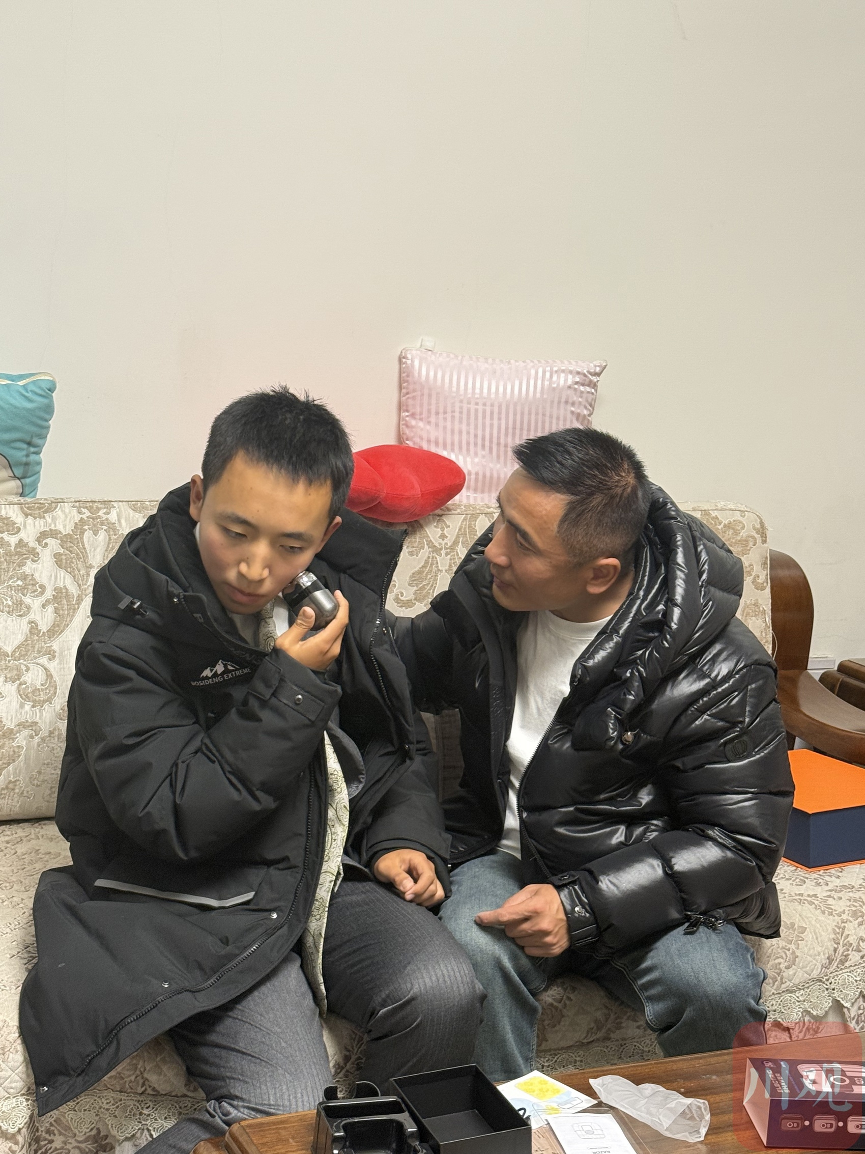 回到家,父亲干强拿出送给儿子的礼物,轩轩挨个“拆箱”:一把未拆封的电动剃须刀、一部二手手机、一双新鞋。“鞋子,是希望他以后的路走得更扎实。剃须刀,标志着一个男孩子成长了,是男子汉了。”