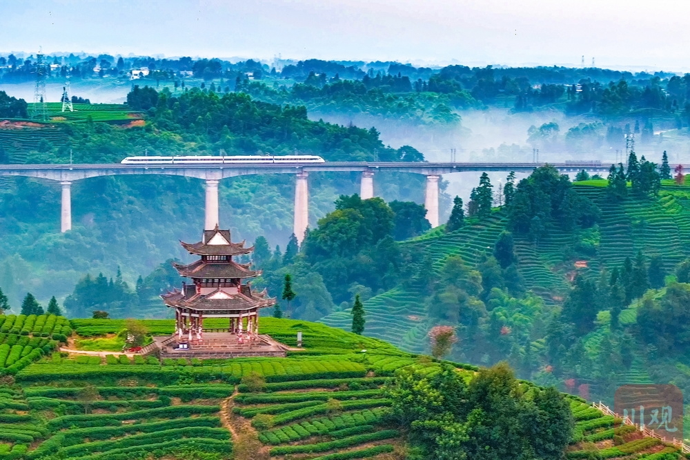 高速动车旁的雅安茶园,成为不少游客争相打卡的美景