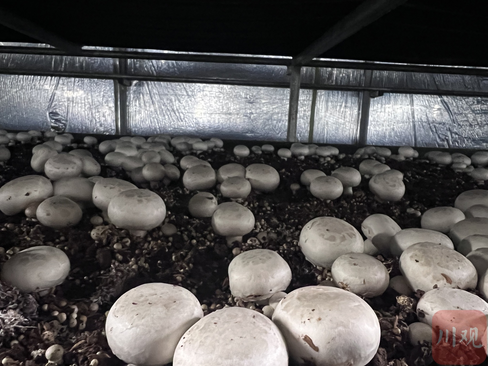 这里是西南地区生产规模最大的智能化双孢菇生产基地。11个菇棚通过智能系统精准调控温度、湿度、二氧化碳浓度、氨气浓度及通风量。例如采摘期的菇棚,温度控制在18摄氏度左右,湿度在60%到65%之间,氨气浓度不超过4%。