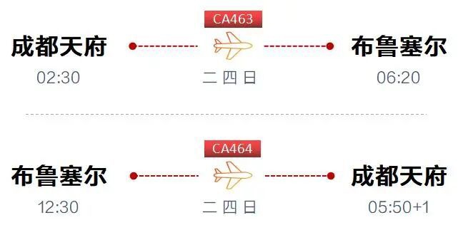 国航开通成都天府直飞布鲁塞尔客运航线。