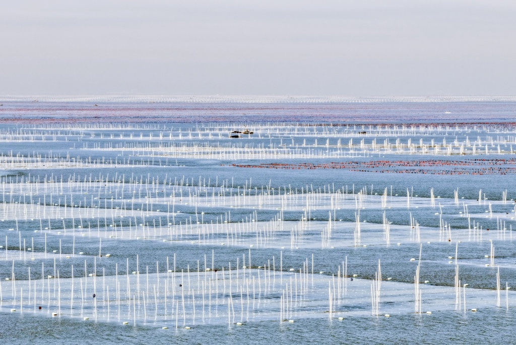 眼下,江苏连云港市海州湾渔场养殖区的头茬条斑紫菜迎来收获时节,“海上菜园”到处都是抢收紫菜的繁忙景象。