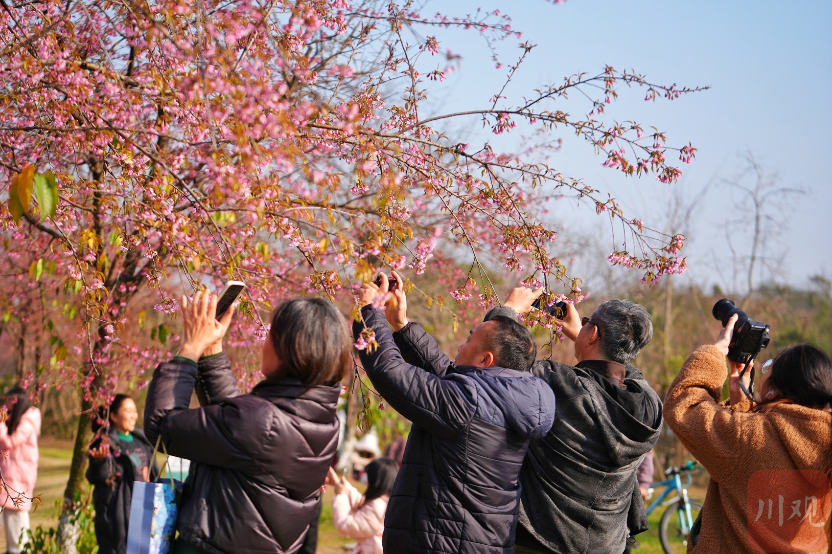 1月8日,“三九”首日,本该寒意正浓的成都却暖意融融。青龙湖湿地公园内,冬樱花悄然进入盛花期,粉色花瓣在暖阳下如云似霞,吸引许多市民趁着晴好天气前来打卡,解锁冬日限定浪漫。