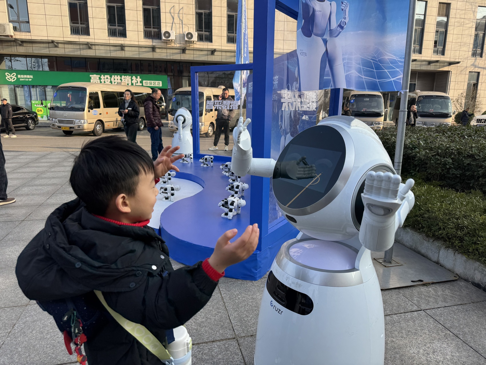 小朋友正在与机器人互动。
