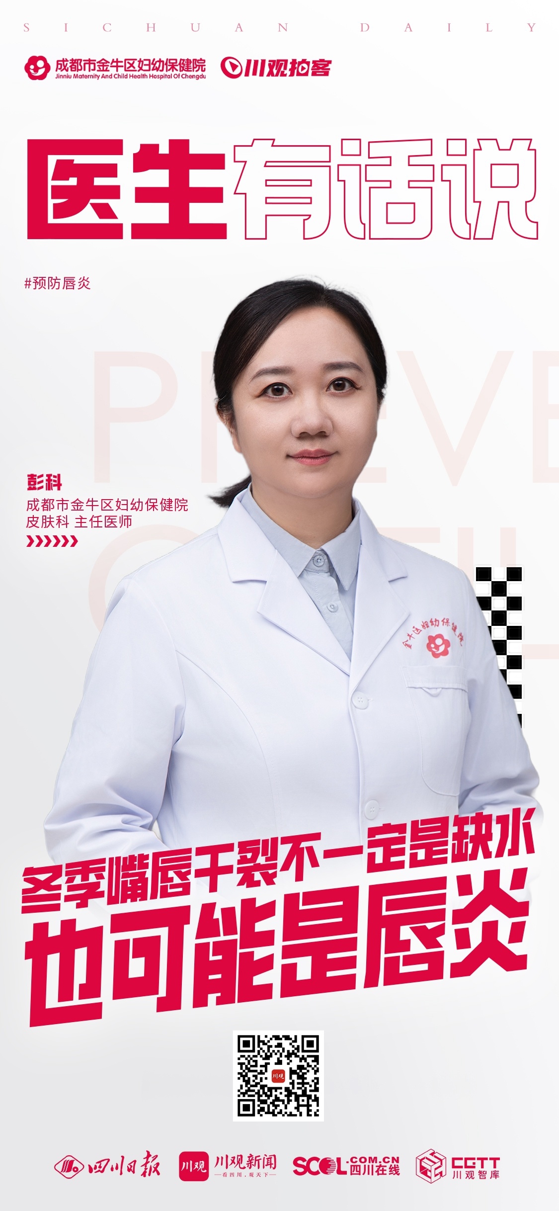 本期栏目,来自成都市金牛区妇幼保健院皮肤科的主任医师彭科,就跟大家说一说什么是唇炎以及常见类型,指导大家如何正确应对唇炎。