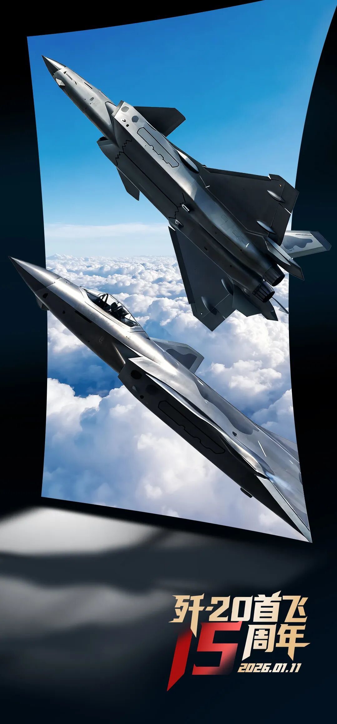 2011年1月11日下午1时11分,一架线条刚毅、神秘科幻的“四川造”歼-20“威龙”战机在众人期待的目光下完成首飞,并稳稳降落跑道。经过十五年风云淬炼,被网友们亲切称为“黑丝带”“银河战舰”的歼-20,早已从惊鸿一瞥的“明星战机”,成长为守护蓝天的“中坚力量”。一组海报和视频带你回顾歼-20“威龙”战机驭风翱翔。