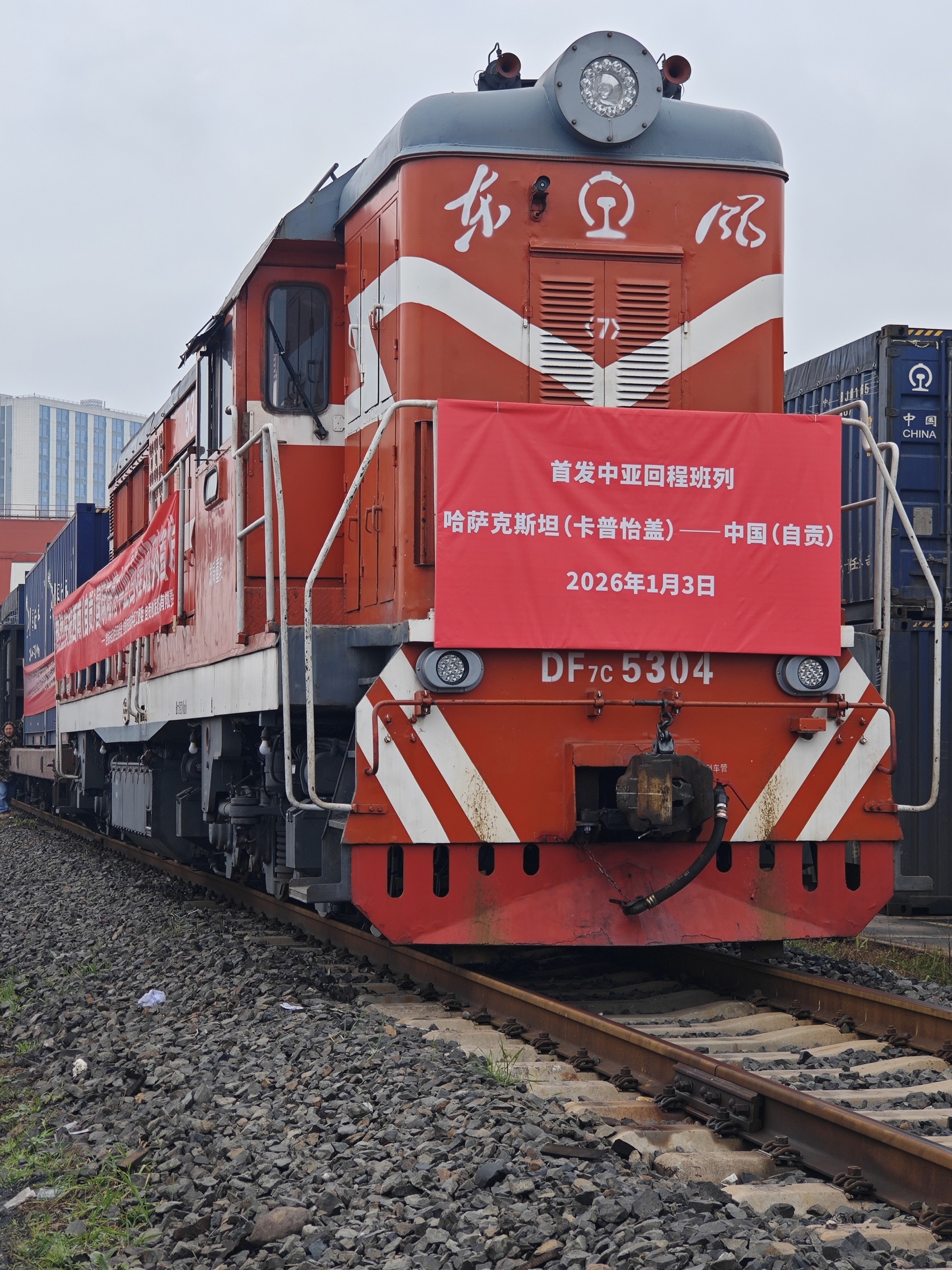 1月3日,一列从哈萨克斯坦卡普恰盖发出的回程班列,历时11天顺利抵达自贡南站。