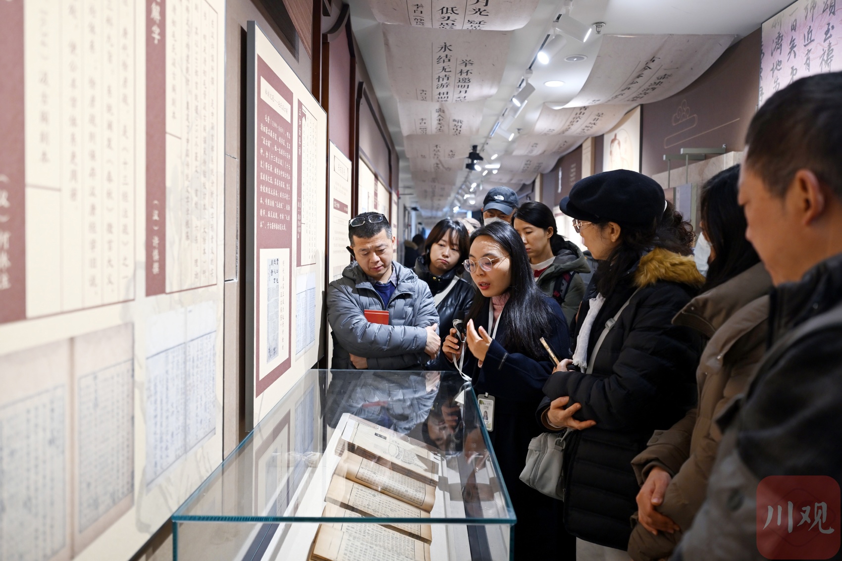 1月13日,“浣风拂典・锦水漱玉——成都图书馆馆藏古籍珍品展”在天府人文艺术图书馆启幕,不少古籍爱好者专程前来观展打卡。