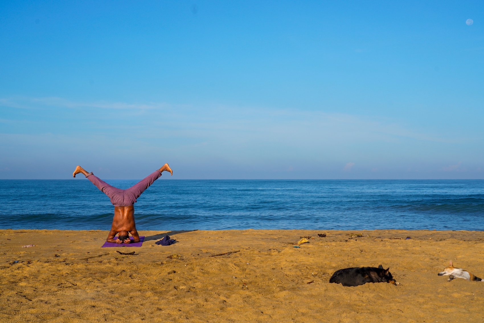 尼甘布海湾的早晨,沙滩上的瑜伽练习者。