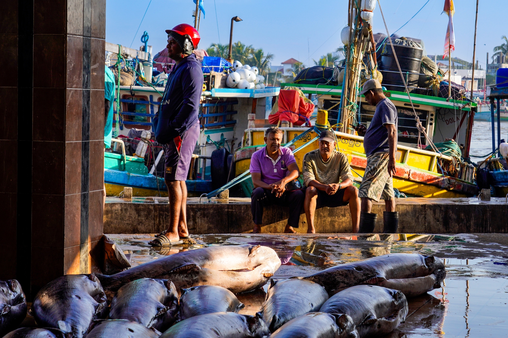 尼甘布鱼市码头边,渔民们忙碌的交易后短暂的休憩。