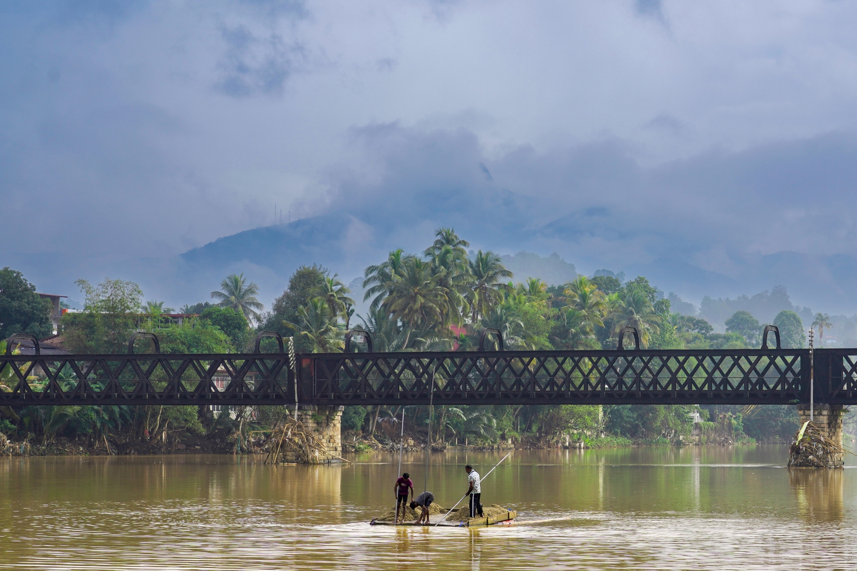 清晨,康提湖畔的石桥下,采砂人已开始了一天的劳作。