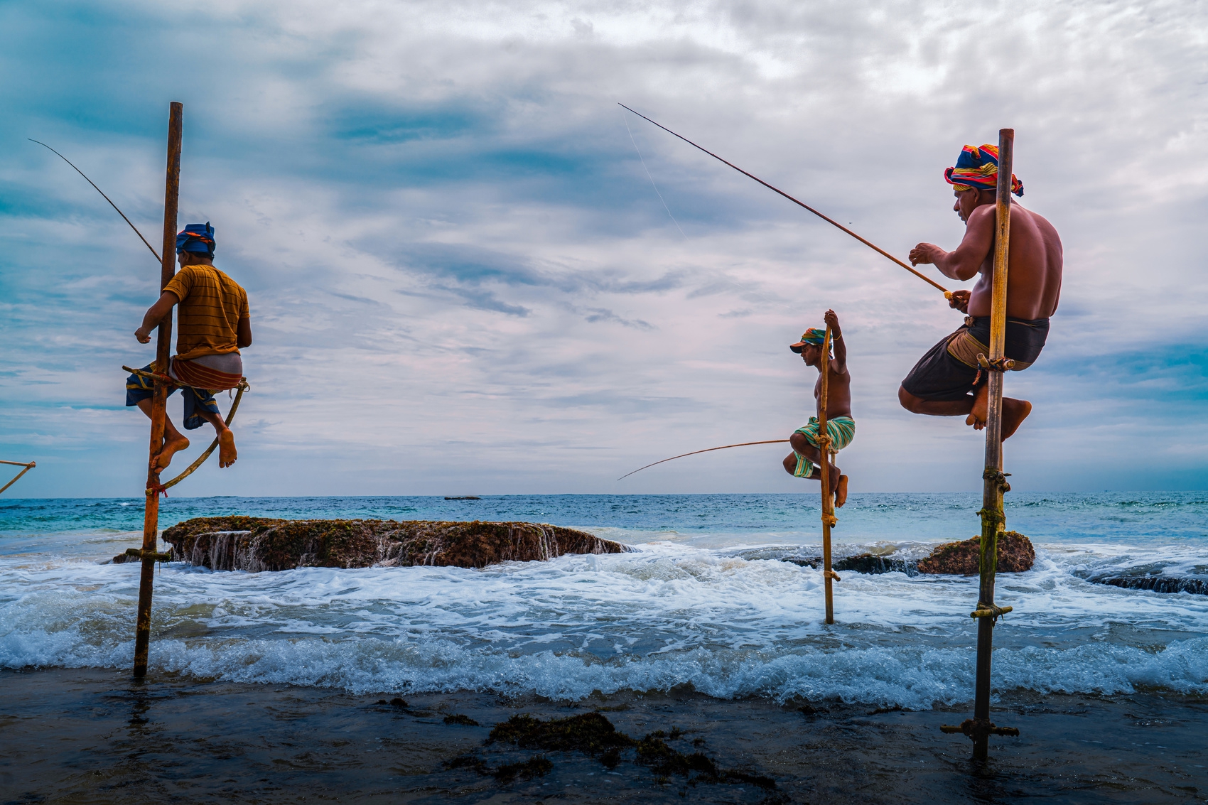 加勒古堡的海岸边,渔民们展示着独特的高跷钓鱼技艺,这一古老的生存智慧如今已成为吸引全球游客的热门景观。