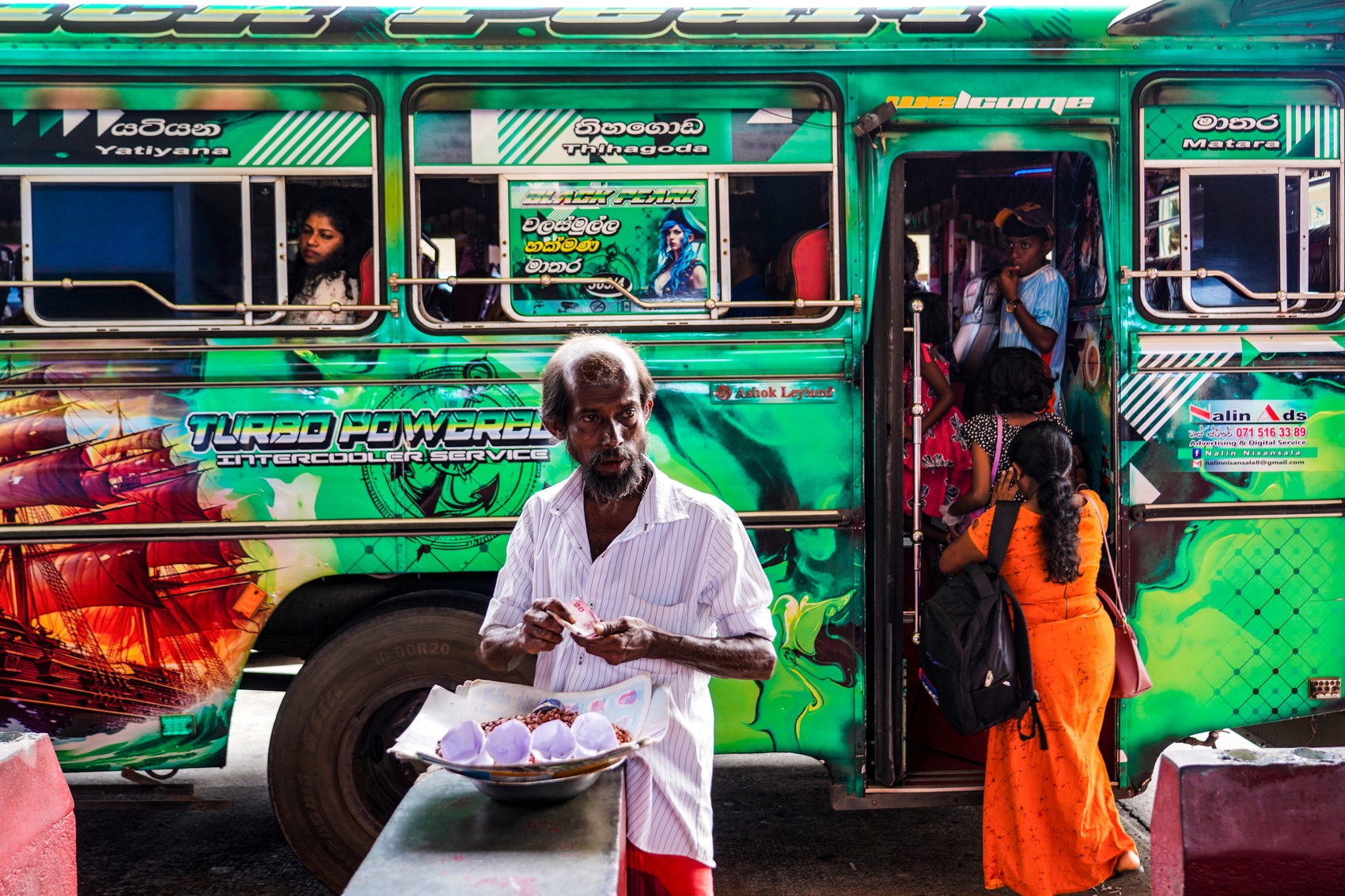 马塔拉汽车站旁,正在街头叫卖小吃的商贩。
