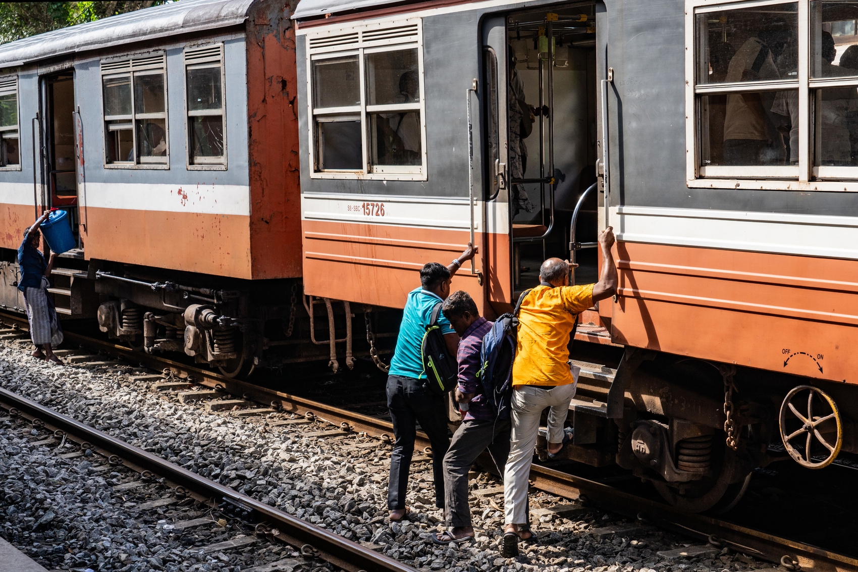 从加勒开往科伦坡的火车上,旅途中的母女三人。